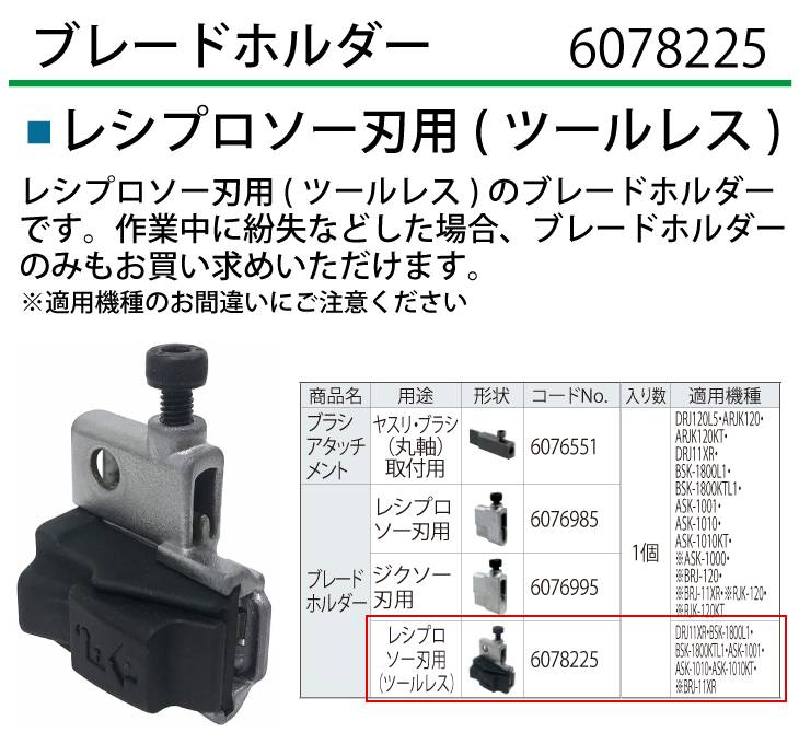 □用途:レシプロソー刃用(ツールレス)ブレードホルダー