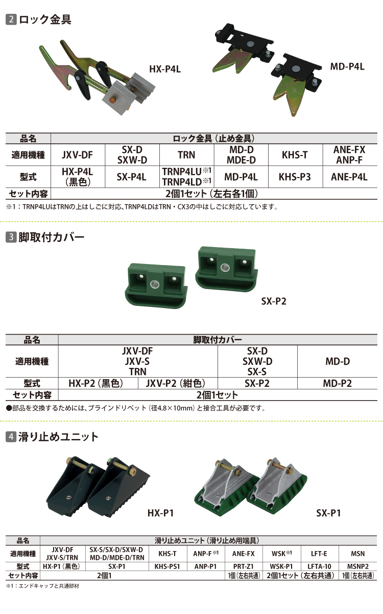 アルインコ (配送先法人限定) 滑り止めユニット HX-P1 セット内容:2個1セット (左右共通) 適用機種:CX-DE/JXV-DF/JXV-S/TRN はしご パーツ 部材