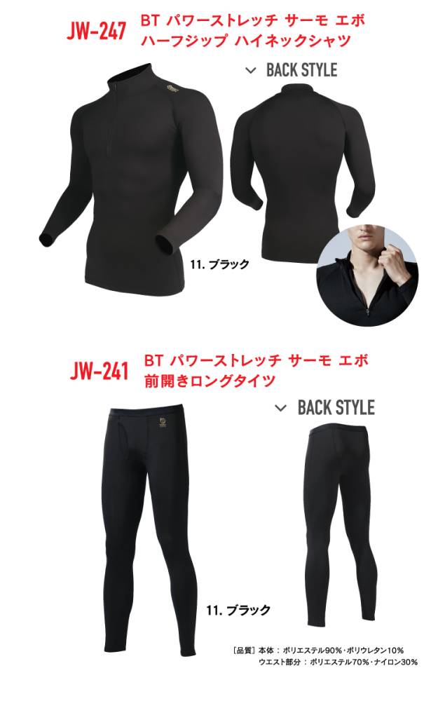 蓄熱 長袖クルーネックシャツ JW-248 Mサイズ ブラック おたふく手袋 サーモエボ 全面消臭 蓄熱保温 速乾 インナーシャツ