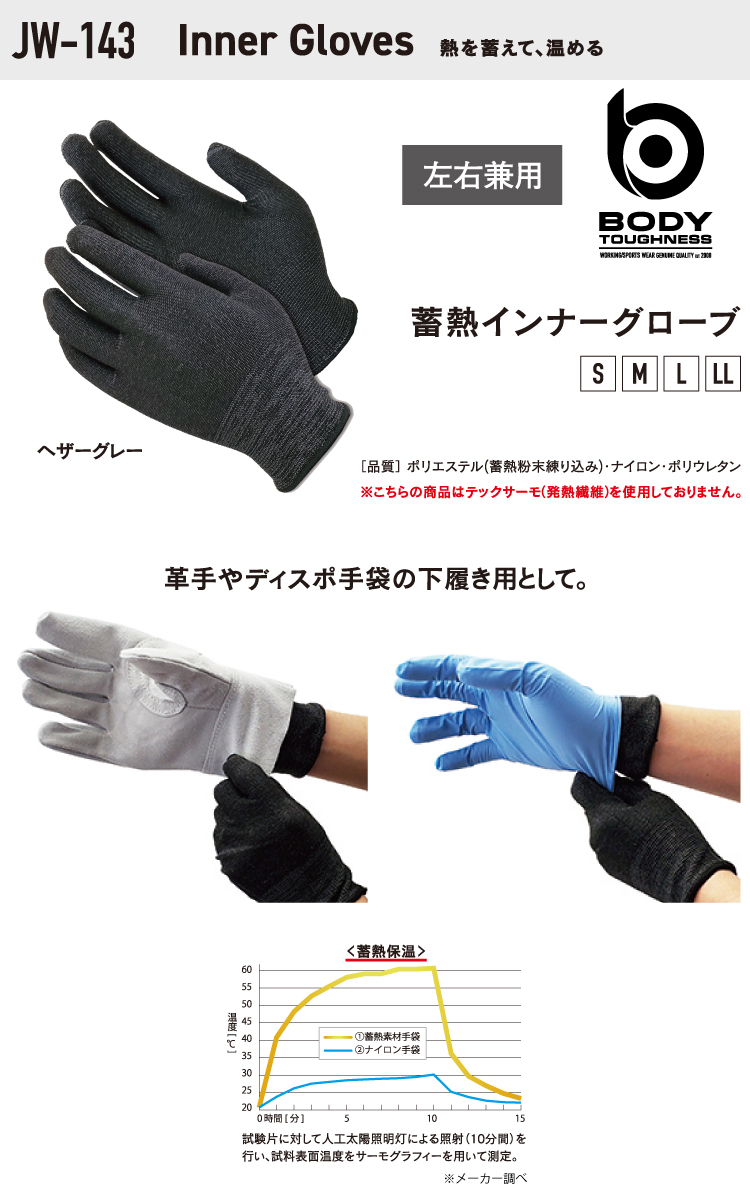 蓄熱インナー手袋 JW-143 Sサイズ ヘザーグレー おたふく手袋 インナーグローブ ゴム手袋 ニトリル手袋 革手袋