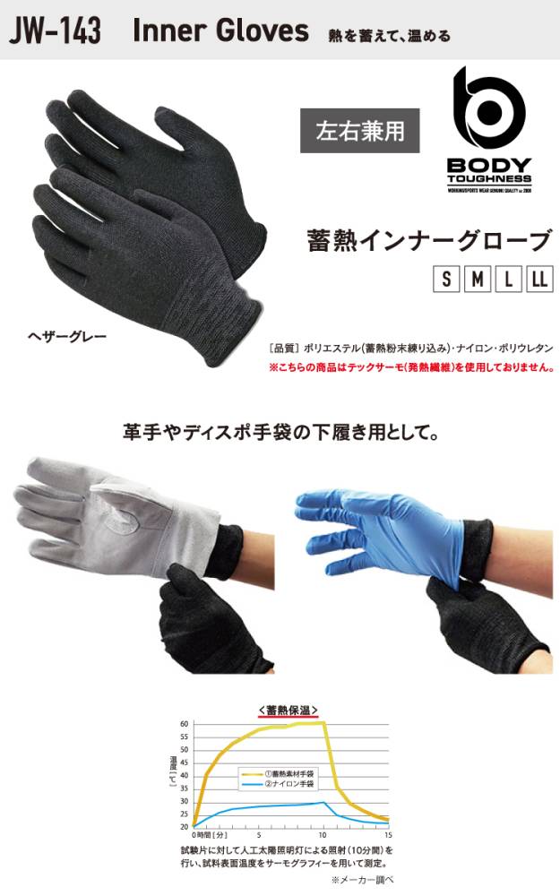 蓄熱インナー手袋 JW-143 Lサイズ 3双セット ヘザーグレー おたふく手袋 インナーグローブ ゴム手袋 ニトリル手袋 革手袋