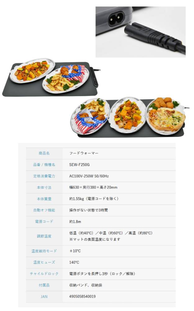 □調節温度:低温(約40℃)/中温(約60℃)/高温(約80℃) ※マットの表面温度になります