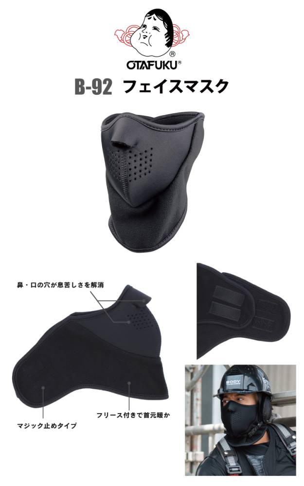 おたふく手袋 フェイスマスク B-92 フリース付 ブラック マジックテープ 黒