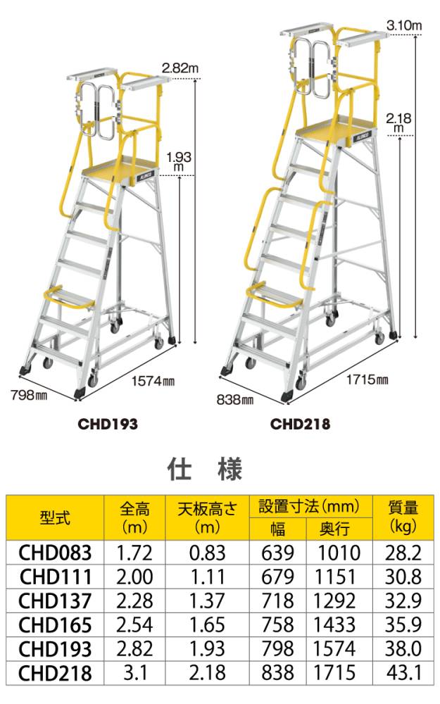 アルインコ/ALINCO フル手すり付作業台 CHD137 リフトアップキャスター 天板高さ137cm 最大使用質量:150kg 組立式