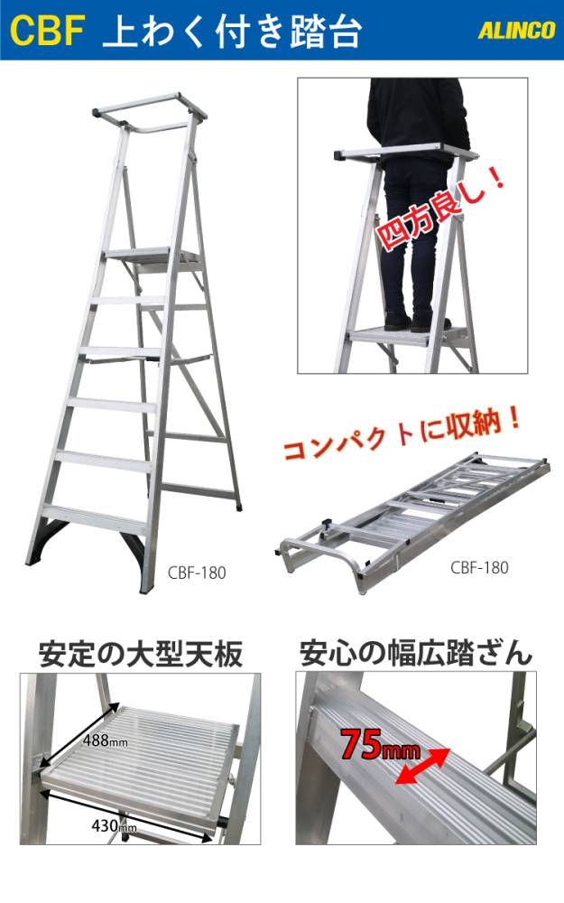 アルインコ 上わく付踏台 CBF-150 天板高さ:145cm 使用質量:150kg 幅広踏ざん 大型天板