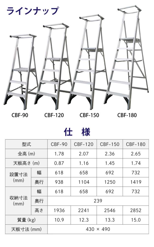 アルインコ (法人様名義限定) 上わく付踏台 CBF-150 天板高さ:145cm 使用質量:150kg 幅広踏ざん 大型天板