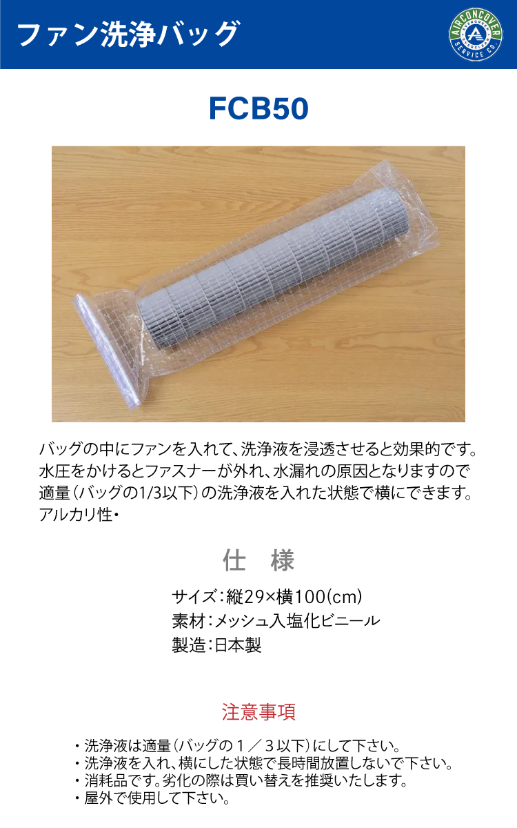 ファン洗浄バッグ FCB50 送風ファン エアコン洗浄カバー エアコンカバーサービス BBK 横浜油脂工業 Linda MZ31