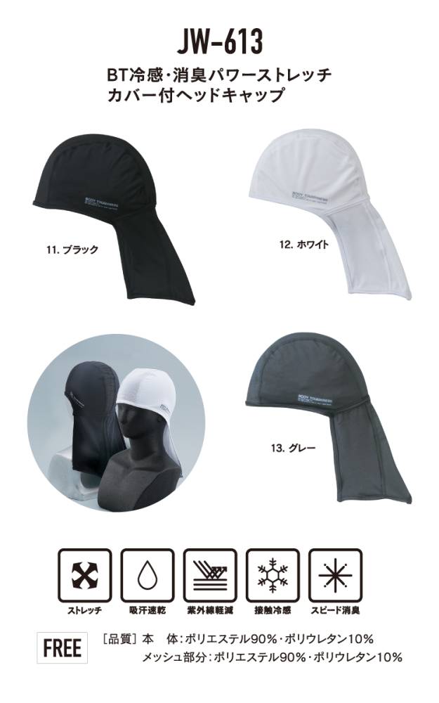 おたふく手袋 冷感・消臭 ヘッドキャップ(ネックカバー付) JW-613 4枚入 グレー フリーサイズ UV CUT生地仕様 ストレッチタイプ