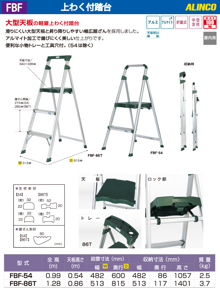 アルインコ/ALINCO(法人様名義限定) 上わく付踏台 FBF-86T 天板高さ:0.86m 最大使用質量:100kg