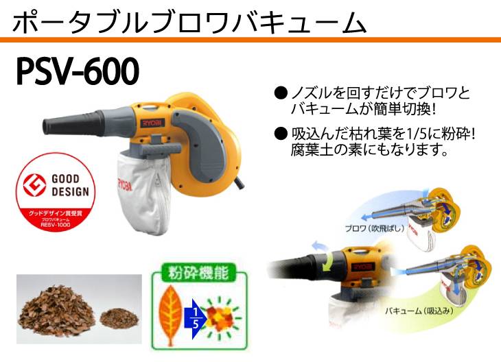 京セラ (リョービ/RYOBI) ブロワ ブロワバキューム ポータブル 粉砕機能 吹き寄せ 集塵 ダストバッグ容量2l グッドデザイン賞受賞商品 PSV-600
