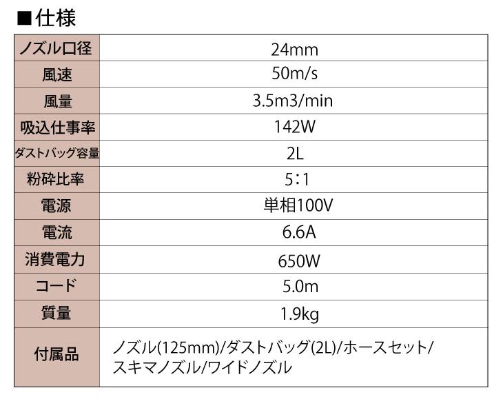 ノズル(125mm)/ダストバッグ(2L)/ホースセット/スキマノズル/ワイドノズル