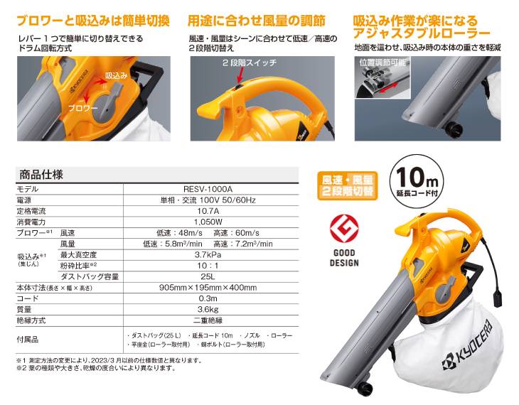 京セラ (リョービ/RYOBI) ブロワ ブロワバキューム RESV-1000A 粉砕機能 吹き寄せ 集塵 ダストバッグ容量25l RESV-1000後継機種