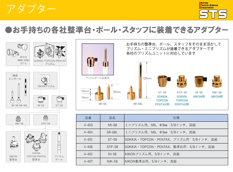 STS アダプター ST-58 SOKKIA・TOPCON・PENTAXプリズム用 5/8インチ